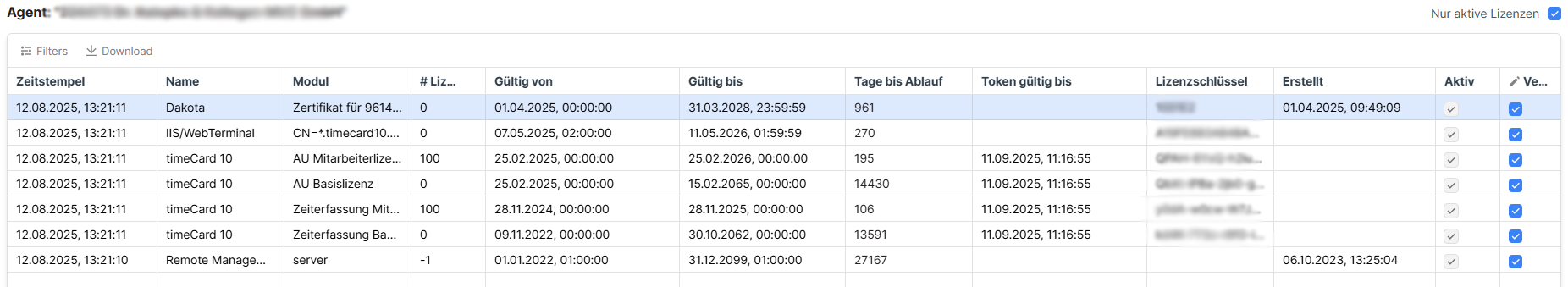 Alle bestellten Lizenzen werden direkt eingespielt nach der Bestellung
